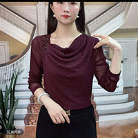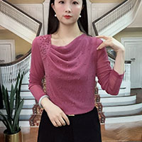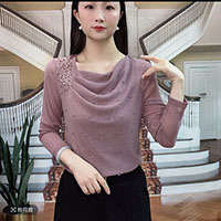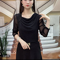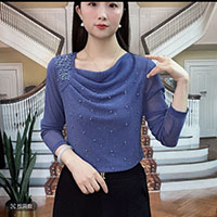 [3] 新款時尚 堆堆領純色燙鑽 減齡氣質小衫 網紗長袖款上衣,3入組 NT$1598(均價532)