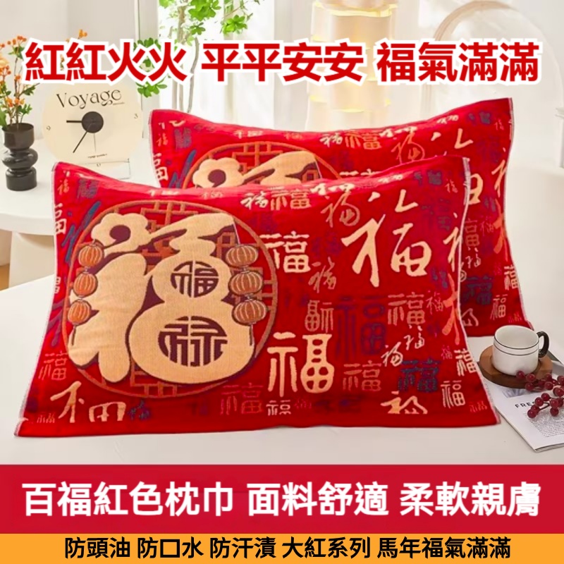 「2026馬年百福枕巾」馬上有福 優質棉六層加厚防頭油 百福國風吉祥印染 親膚柔軟吸濕透氣 紅火喜慶年節必備 好運枕著來·福氣滿滿迎新春